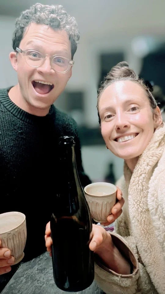 We, Georgie and Cameron, make full juice, natural cider in Cornwall, following the same principles as natural wine. It's 100% apples, naturally occurring wild yeast, hand-picked, hand washed and fermented in ex-wine oak barrels.